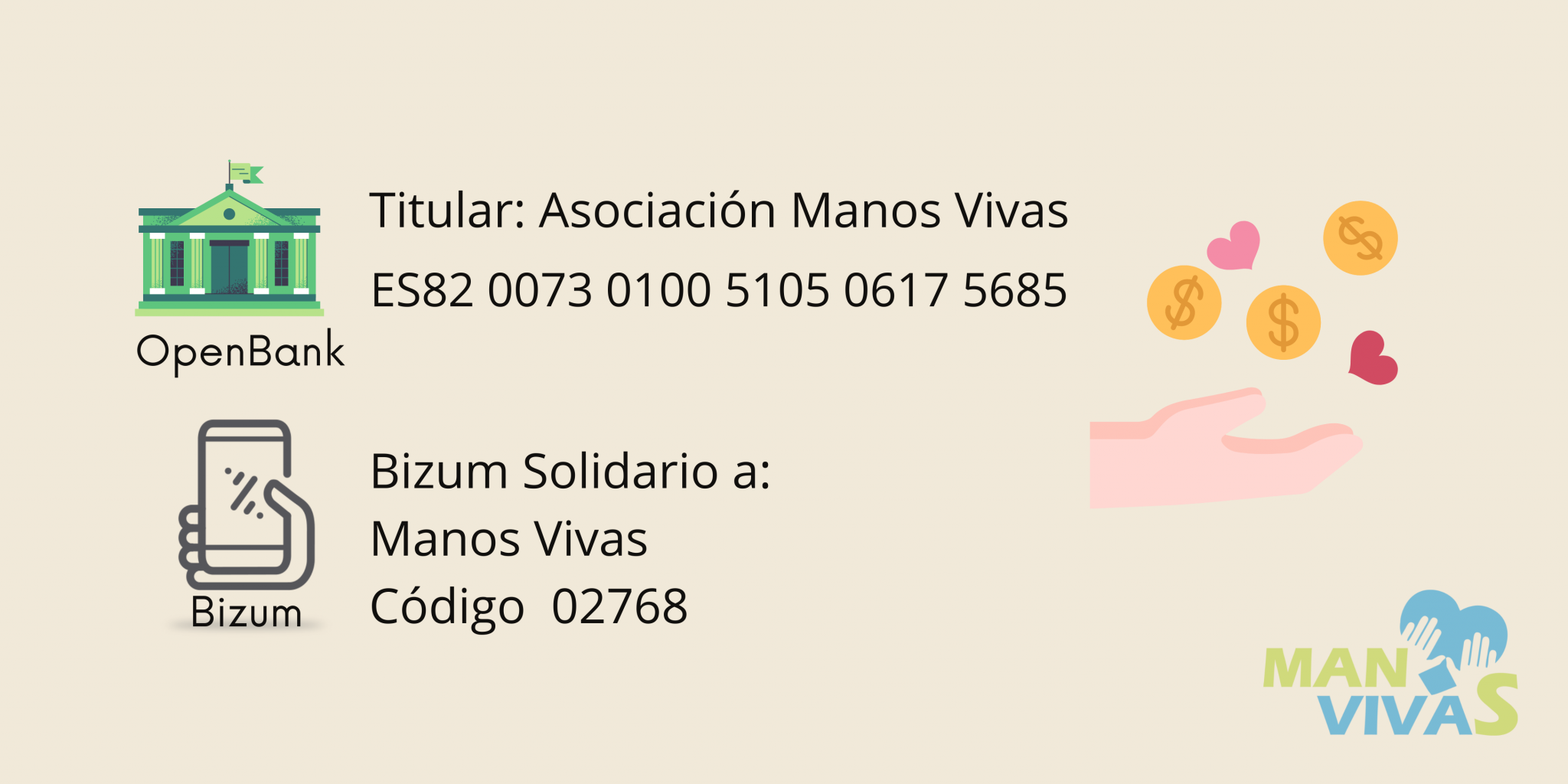 Puedes realizar donativos para apoyar nuestros proyectos, mediante transferencias bancarias a nuestra cuenta de OpenBank, o puedes hacer un Bizum solidario.